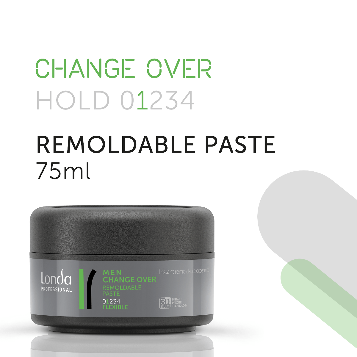 Пластична паста для волосся нормальної фіксації Change Over дозволяє миттєво змінювати укладку, створюючи нескінченні варіації моделювання протягом усього дня. Легко і без залишку змивається водою. З мікрополімерамі 3D-Sculpt.